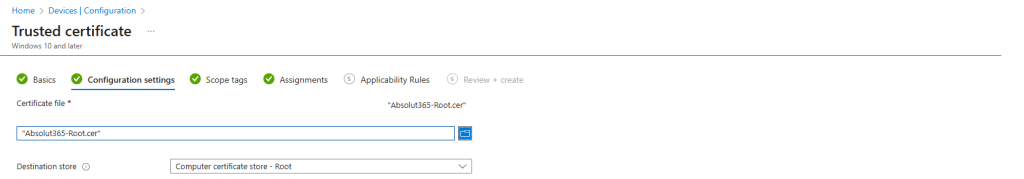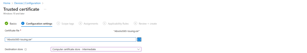 De esta manera, los equipos reconocerán y confiarán en los certificados que luego se emitan vía Intune.
