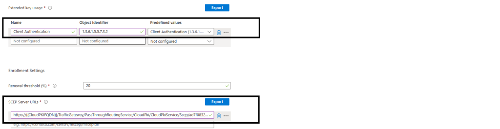 URLs del servidor SCEP: pegá acá la URI SCEP que copiaste previamente.
