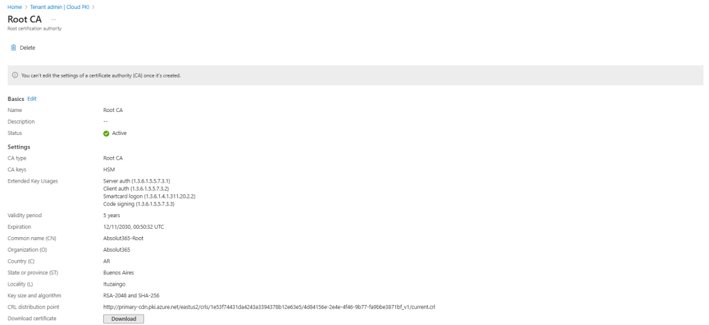 Y eso es todo para completar el despliegue de una CA de dos niveles en la nube.
