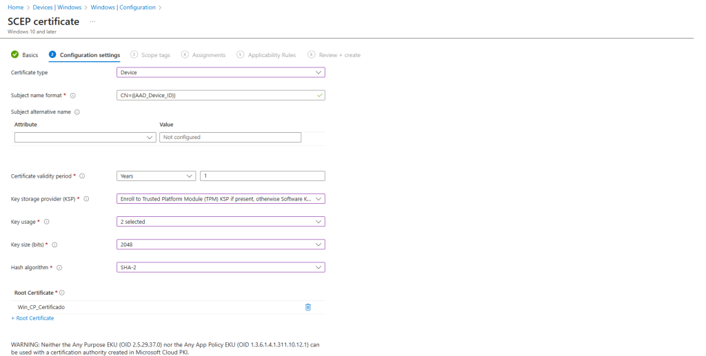 Para hacerlo, vamos a crear un perfil de certificado de confianza por cada CA y por cada plataforma (Windows, iOS/iPadOS, macOS, Android) donde vayamos a usar SCEP.
